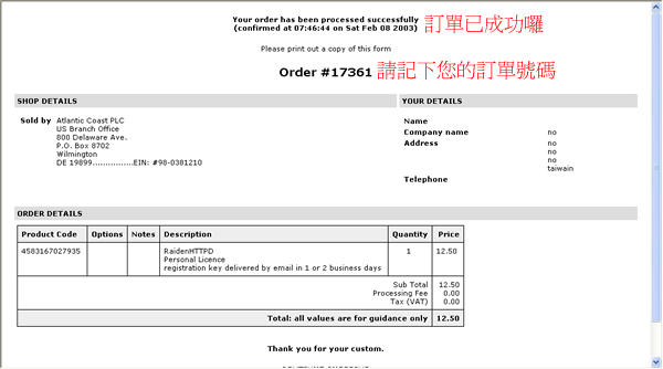 安裝程式下載完畢之後 ( RaidenHTTPD.exe