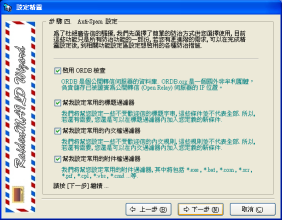 此頁面幫您設定了預設的防治廣告信設定. 請按 [下一步] 繼續.