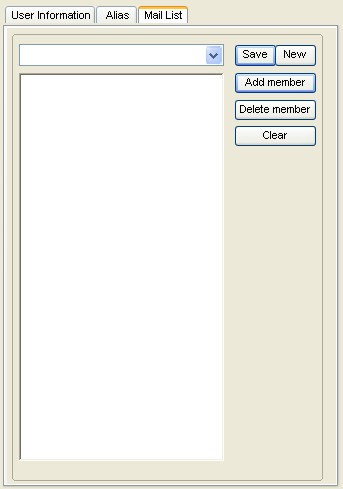 You can click [NEW] to create a new maillist and give it a new name (can not be duplicate from existing account name), then choose the account in left list and click [Add User] to add to the list. When you done, just click [Save] to store the list to mail list file. When you done, a maillist account will be created and show on left list.